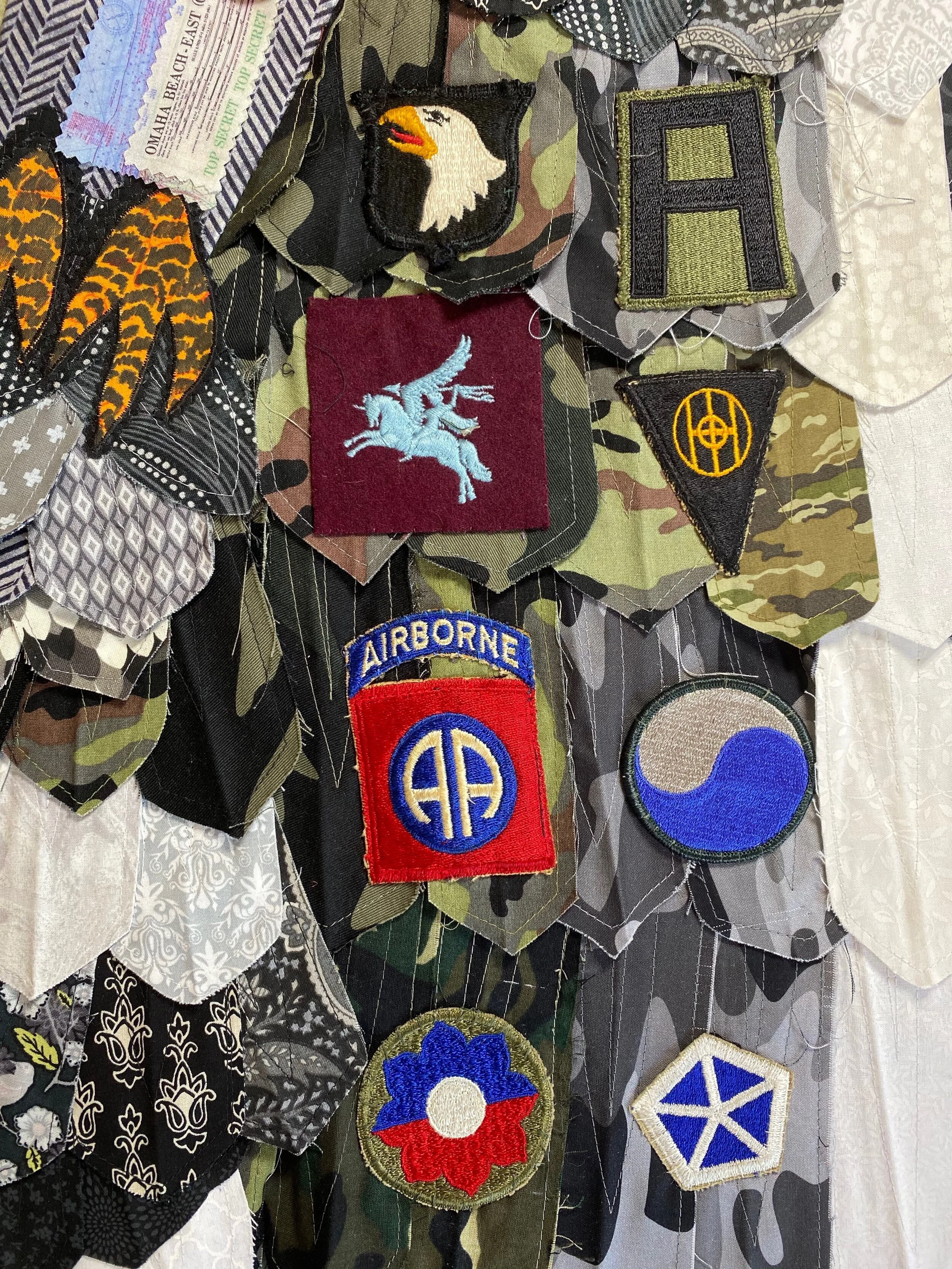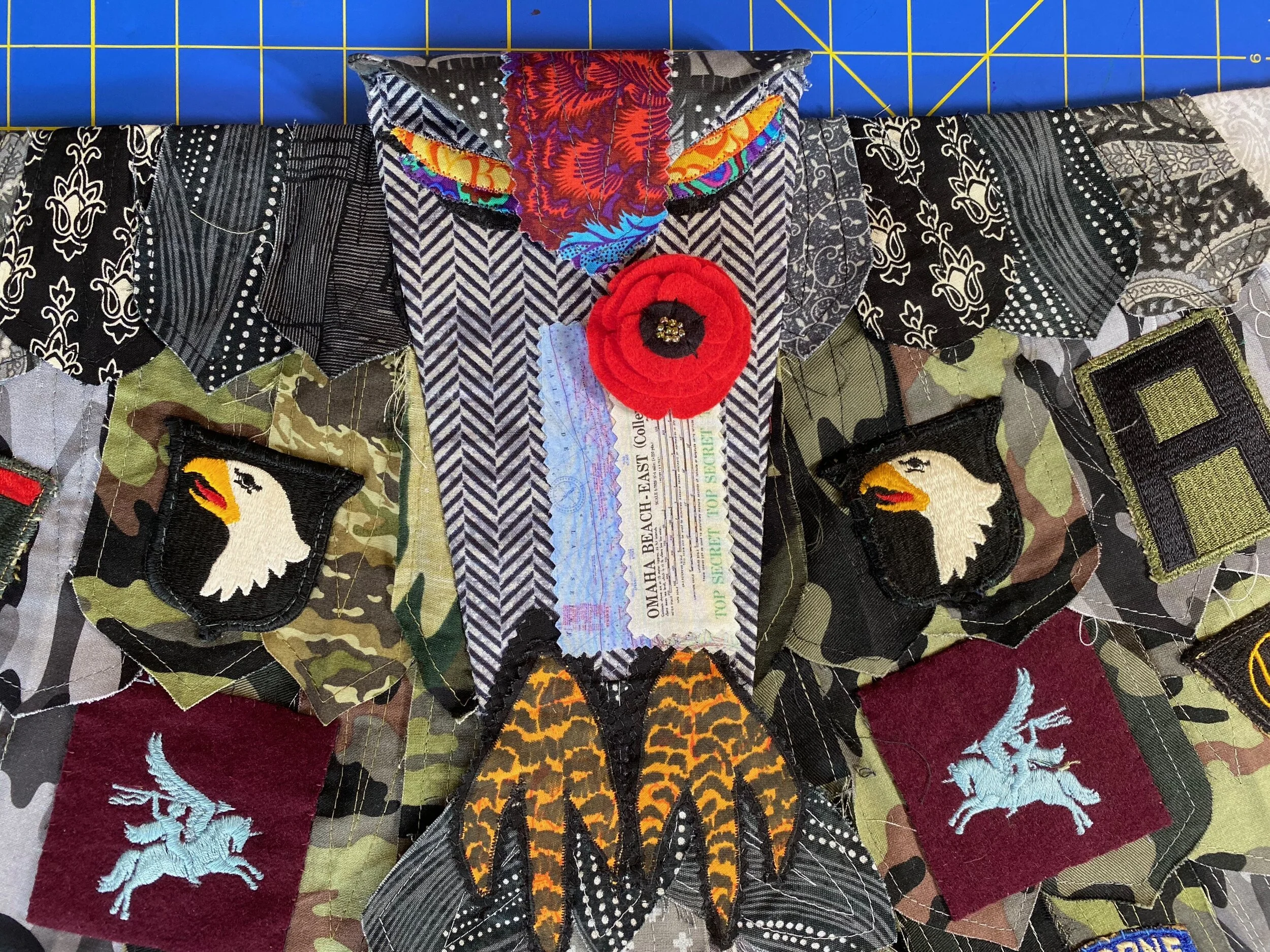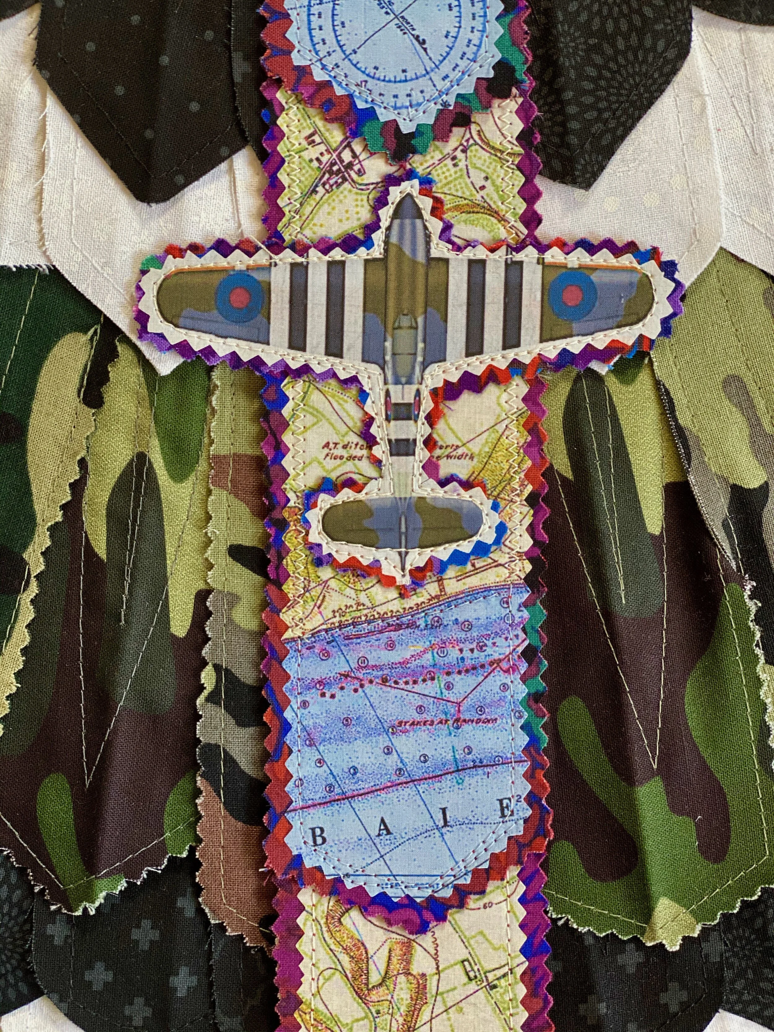 Appliquéd Supermarine Spitfire, Omaha Beach landing maps.