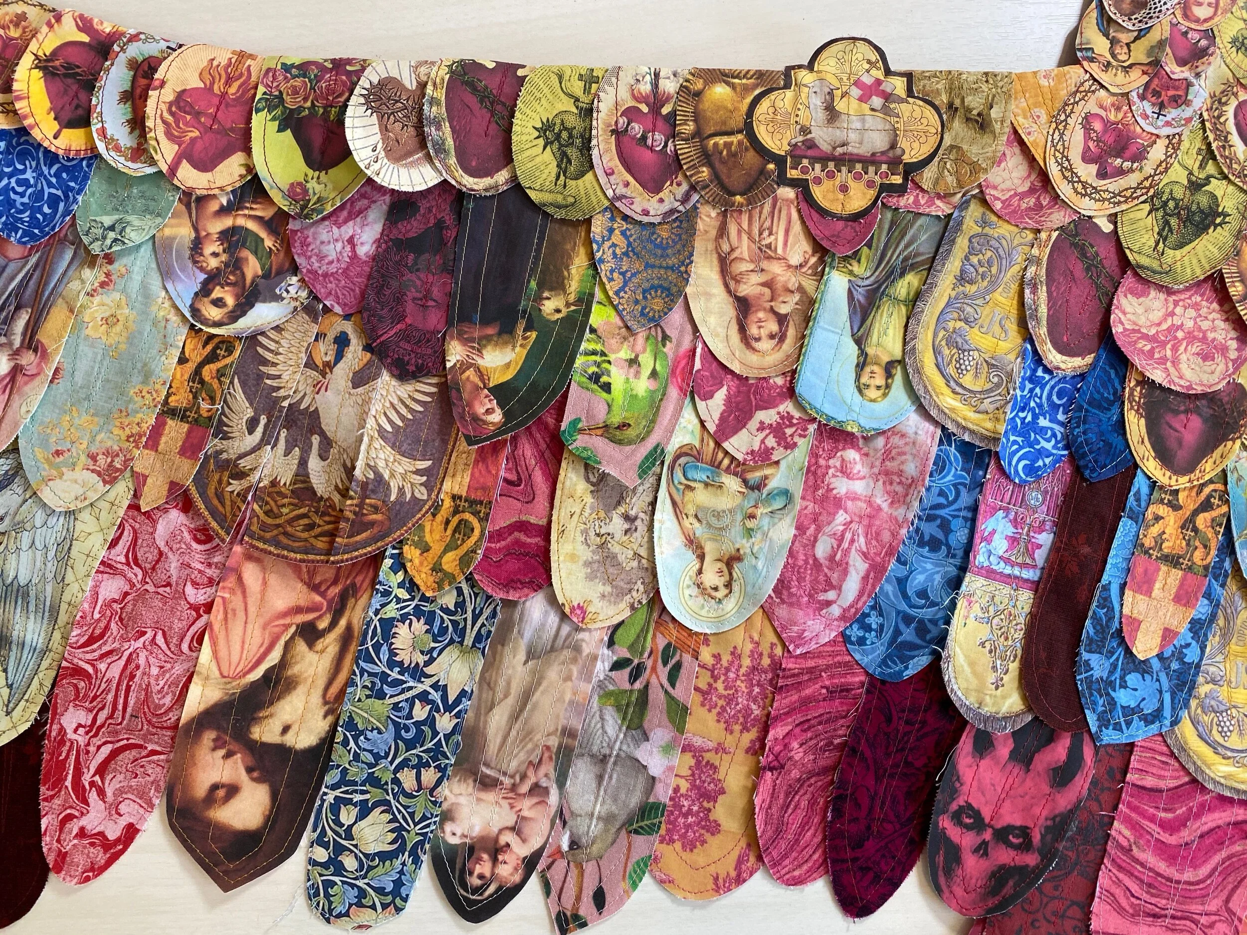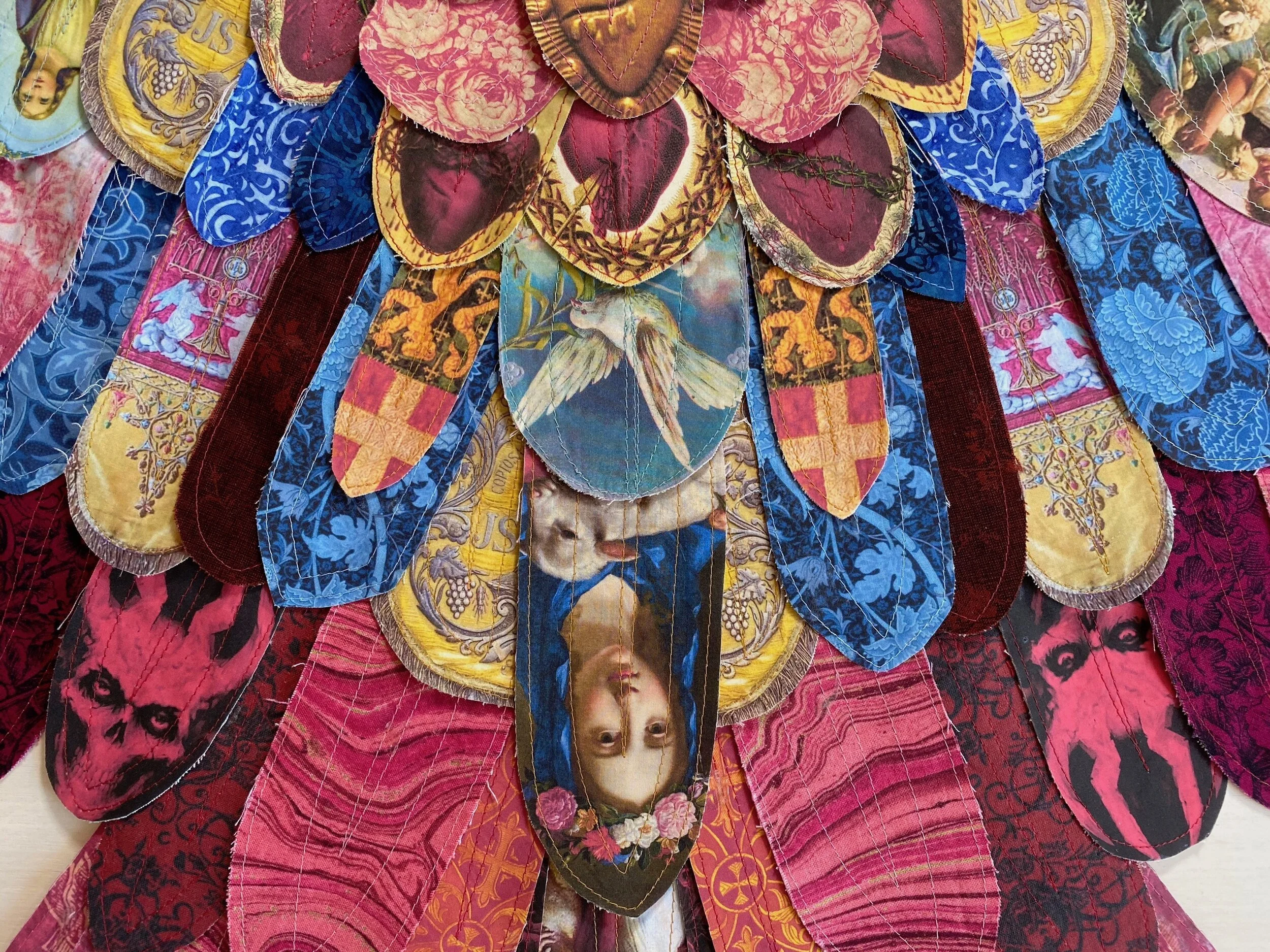 My mother was a salt-of-the-earth Ohioan who found great joy and comfort in her faith and in her stitchwork. Faith is a tribute to this extraordinary woman: a quilt incorporating images of good and evil, with iconography of her Christian faith.